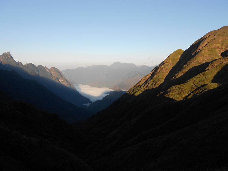 Giấc ngủ chập chờn, 5h sáng khi trời còn tối đã được đánh thức dậy. Sau này em mới hiểu tại sao lại phải dậy và đi sớm thế. Vì quãng đường từ 2.200m - đỉnh Phan 3.143m thật là quá gian nan, vất và và cả nguy hiểm nữa. Nếu không đi từ sớm thì không thể kịp quay về lán nghỉ khi trời còn sáng.