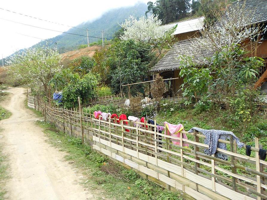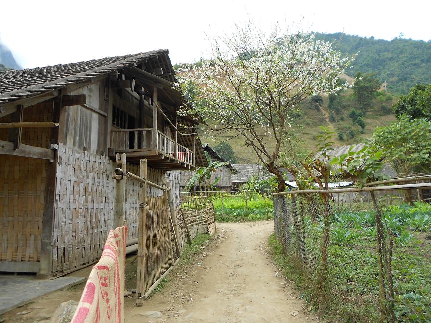 Sau khi leo Phan chỉ còn hơn 1 ngày ở Sapa đi xuống bản, hoa mận nở trắng bông cạnh các nóc nhà, đẹp lắm!