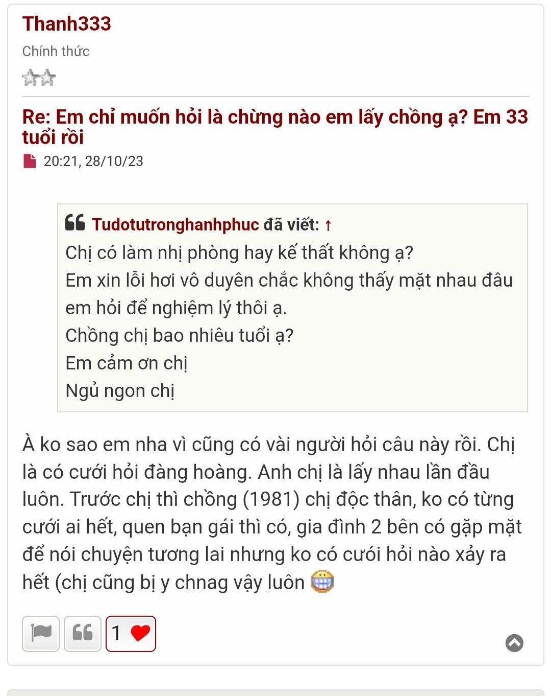 Anh Dokhoavan đoán bạn này kế thất nhị phòng nhưng chị ấy lấy được trai tân
