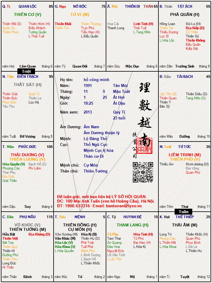 Lá số của mình chắc nằm tại số 10 phải ko bạn.Mình mới tìm hiểu về môn này nên chưa luận được nhiều lắm.Bạn có thể giải cho mình được ko,đặc biệt là vận hạn trong nửa cuối năm nay.