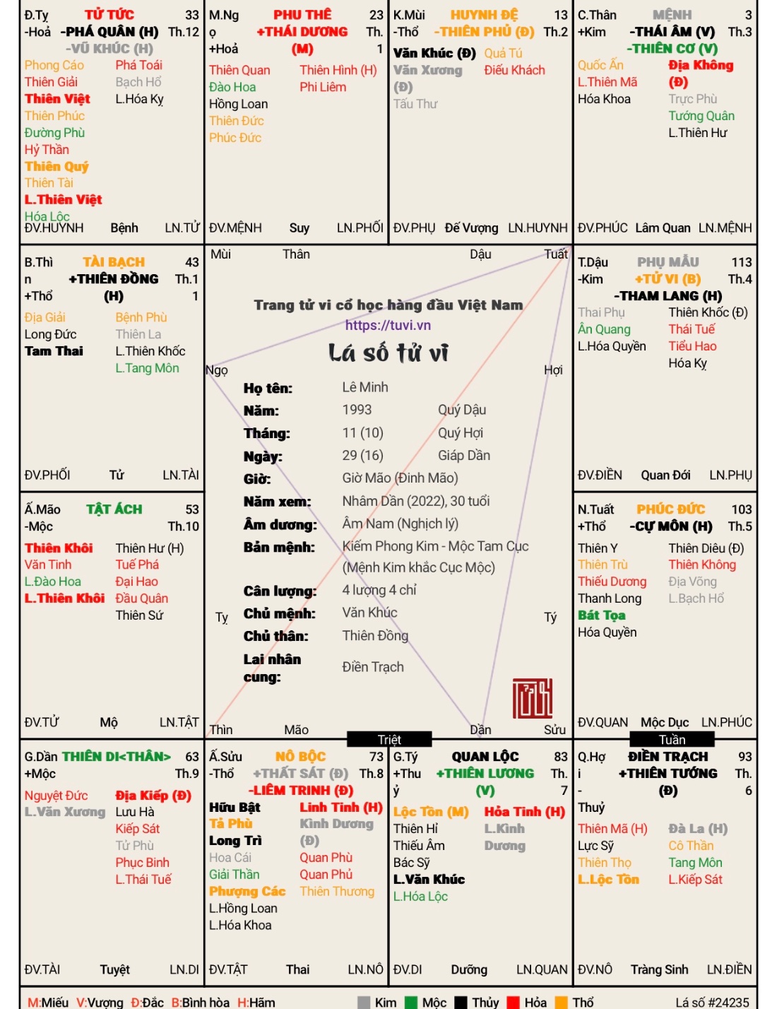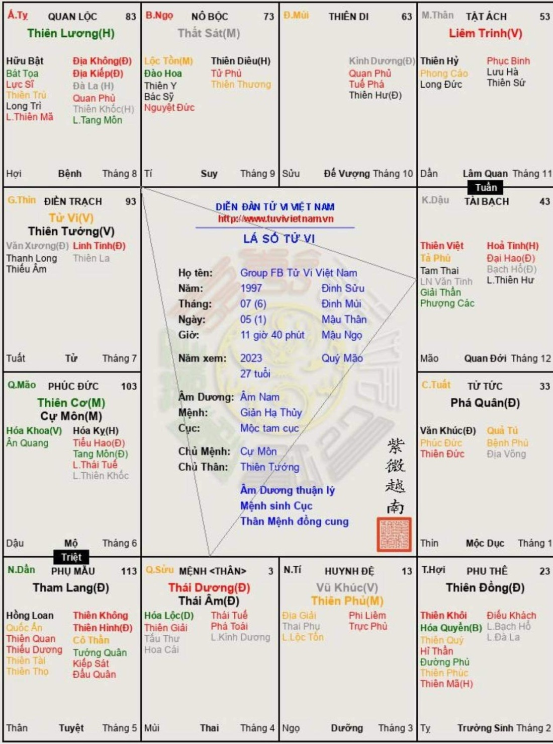 Em rất tâm đắc với #1 của anh hoang kim bao, hoàn toàn đúng với con người em. KK như lưỡi kiếm sắc, dùng không đúng cách không những vô dụng còn hại tới bản thân. Nhưng nếu sử dụng được KK thành thục đến cảnh giới "nhân kiếm hợp nhất" thì uy lực vô cùng to lớn. Đây là lá số của em