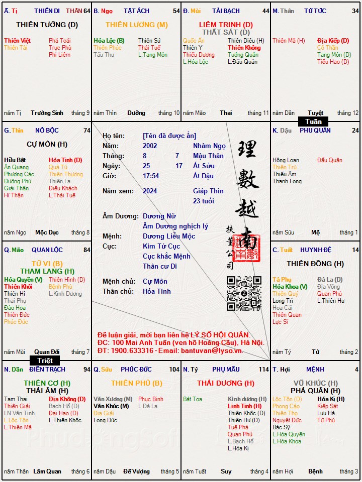 Đây là 1 lá số tiêu biểu: