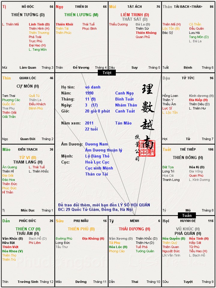 Topic trước em lập không hiểu do nhầm lẫn hay do thói quen cứ lấy giờ sinh của mình thành ra nhầm lá số . Nay em xin post lại để mọi người chiêm nghiệm và cho em vài lời để em học tập.