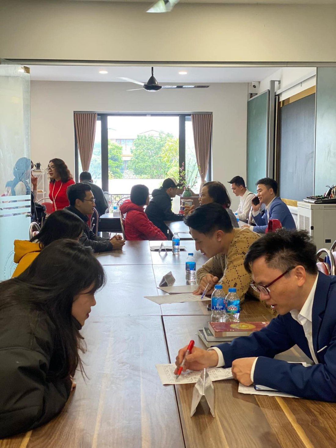 Trừ lúc tiệc tùng, trông họp giống kiểu hiến máu nhân đạo hay ngày hội việc làm quá. Trông hơi đáng sợ he he. Mà ca đẹp trai nhất làng sao lại bị giao cho chân phó nháy vậy. Phải chăng các giai khác ghen tị nên kg dám cho ca vào ảnh???