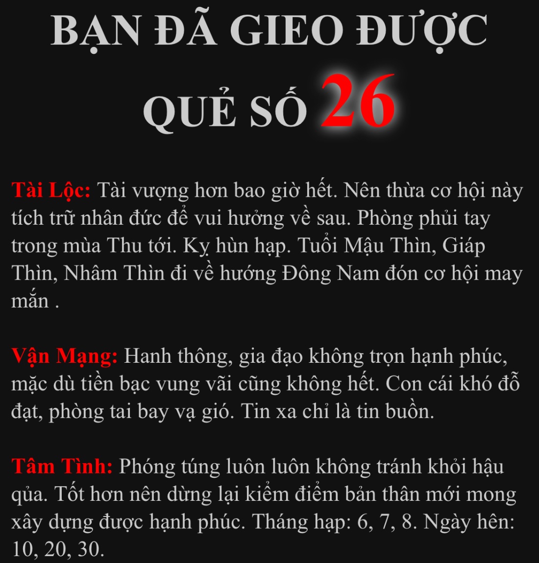 BẠN ĐÃ GIEO ĐƯỢC QUẺ SỐ 13