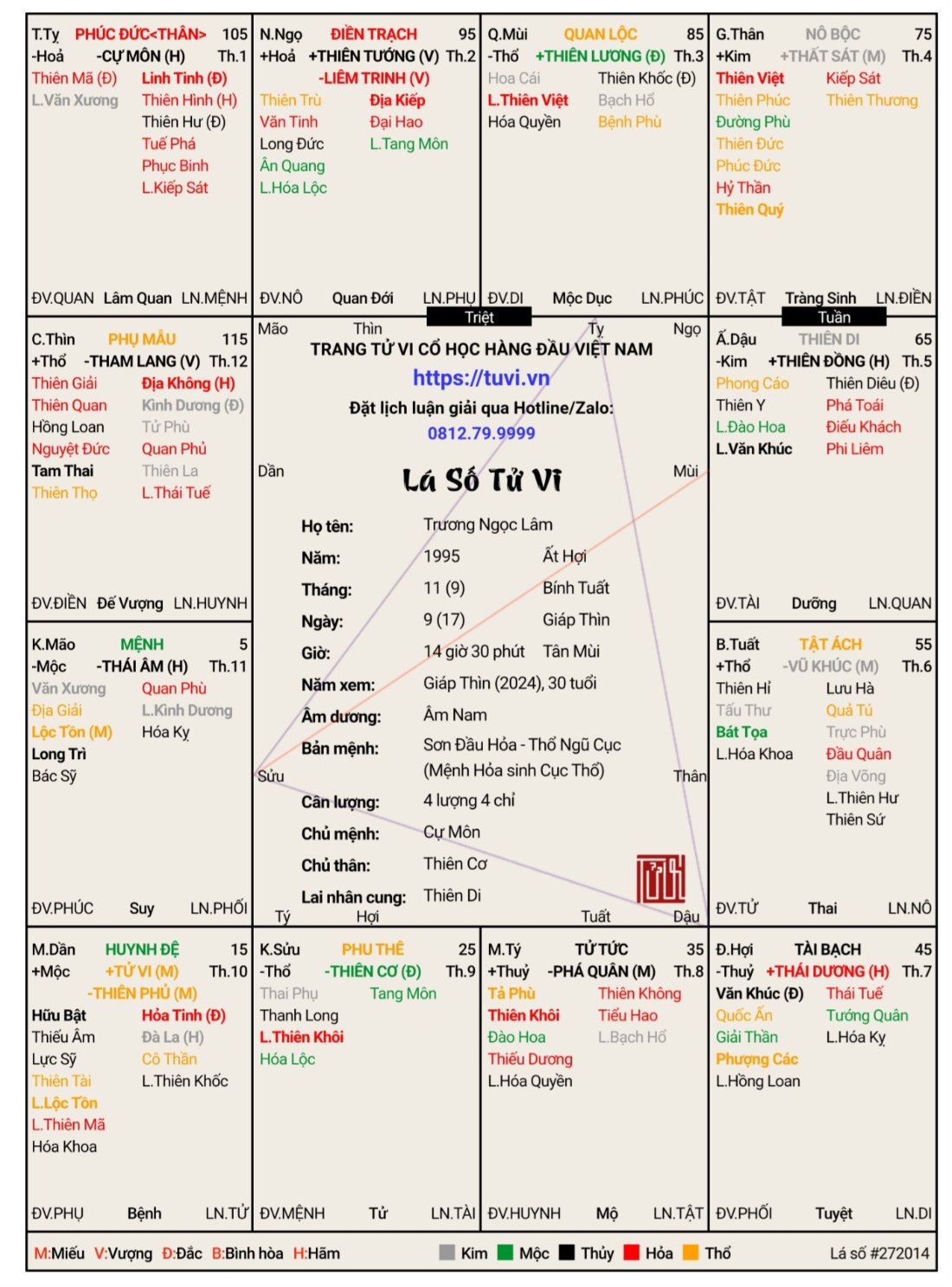 Trúc Trúc, anh đang đọc về dương nhận tí (ngày nghỉ đọc thêm :v), mà anh ko có bát tự để thực nghiệm vì mấy cách này cơ bản là khó tìm (ngoài box ko có), mài dùng tử vi xem sơ dùm anh 2 vận tiếp theo là 50-60 và 60-70 cái (kệ mấy năm lẻ đi) để anh so sánh với bát tự xem có giống ko, 2 giai đoạn này có 2 vấn đề là dậu xung nhận mão có ấn đến điều hoà và sau đó là sát chế nhận có kiêu điều hoà :v