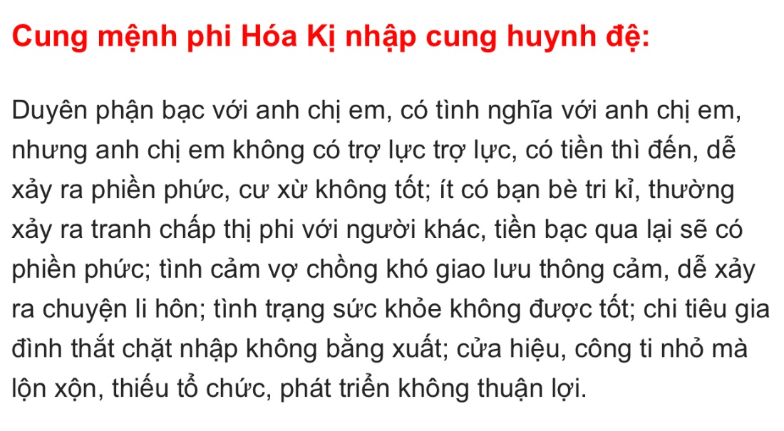 Cung an thân phi hoá kị vào huynh đệ gốc