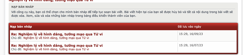 Tớ cũng hok bít diễn đàn cho lưu bài viết nháp nữa cơ đấy... Muh đã mất công vít ra rùi thì seo hok gửi.. hok có ai đọc được thì có nghĩa lý gì?