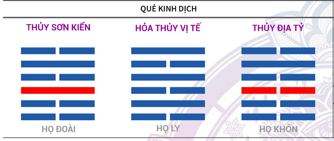 Anh gieo thử thì ra hai quẻ này, quẻ gốc là Thuỷ Sơn Kiển, biến quẻ là Thuỷ Địa Tỷ.