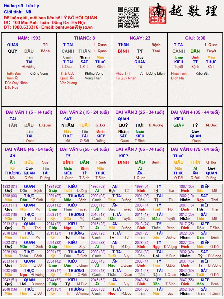 Lá số tử vi : Lưu Ly