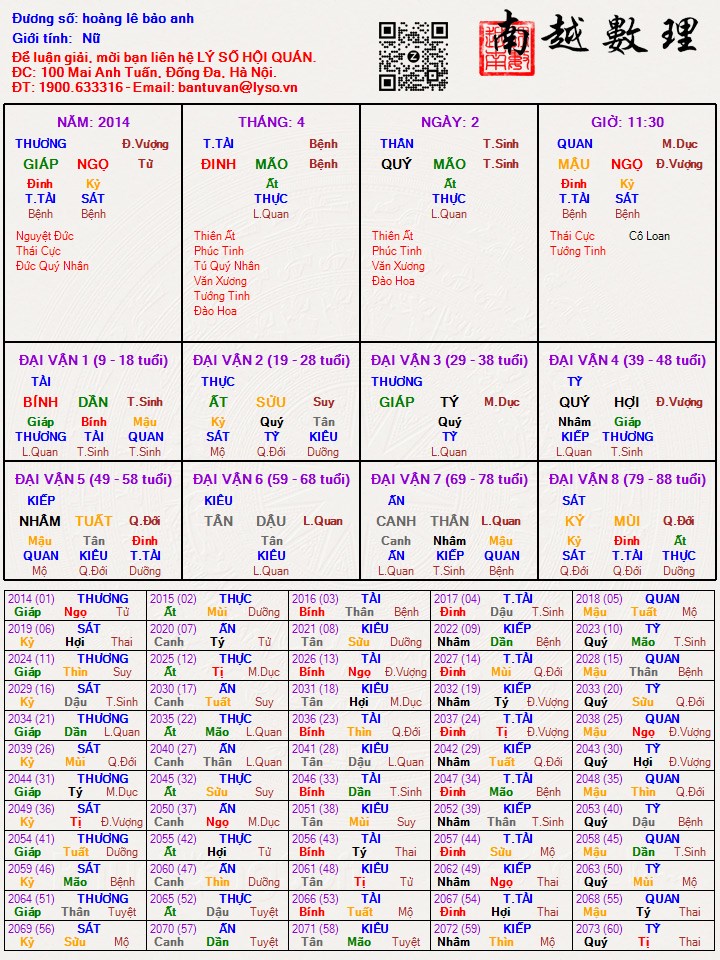 Lá số tử vi : hoàng lê bảo anh