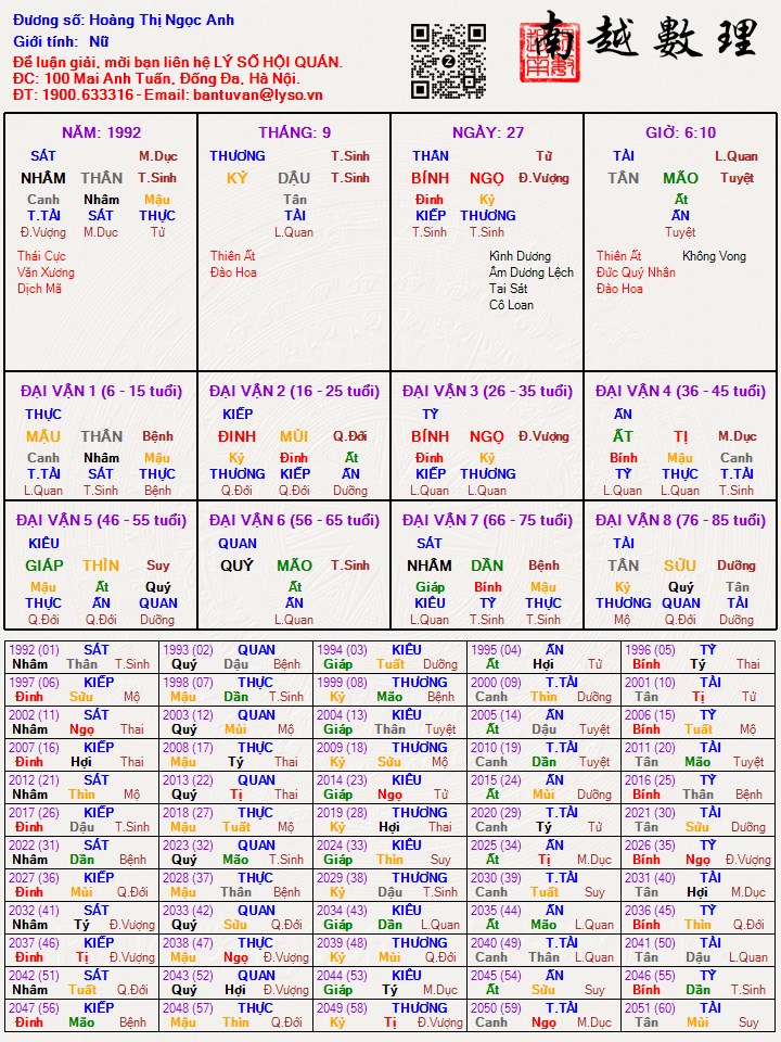 Lá số tử vi : Hoàng Thị Ngọc Anh