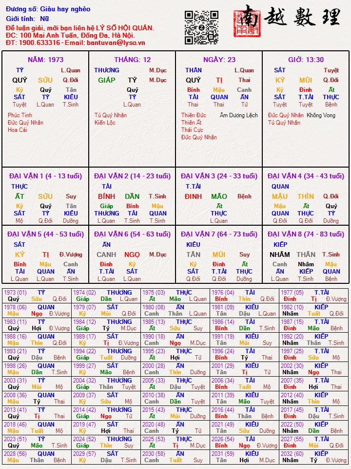 Dịch vụ lấy lấ số tứ trụ (tử bình) nhanh, đẹp, chính xác và miễn phí. Tư vấn, luận giải tứ trụ có uy tín, luận đoán theo tứ trụ, vận hạn từng năm. Có thể quản lý danh sách lá số của mình và chia sẻ lá số thuận tiện.