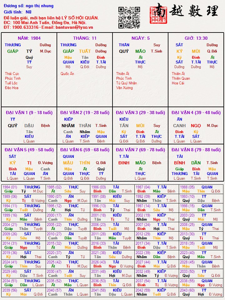 Lá số tử vi : ngo thị nhung