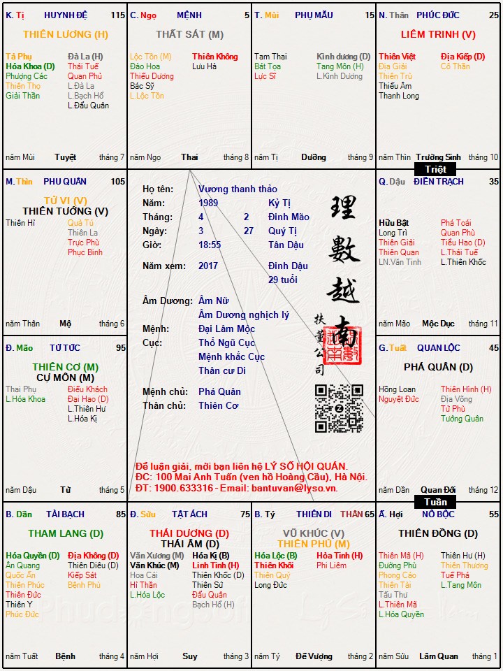 Mình là nữ, muốn nhờ mọi người xem lá số giúp em có tốt không ah, em muốn xuất ngoại không biết có được không, em rất hay thay đổi công việc.