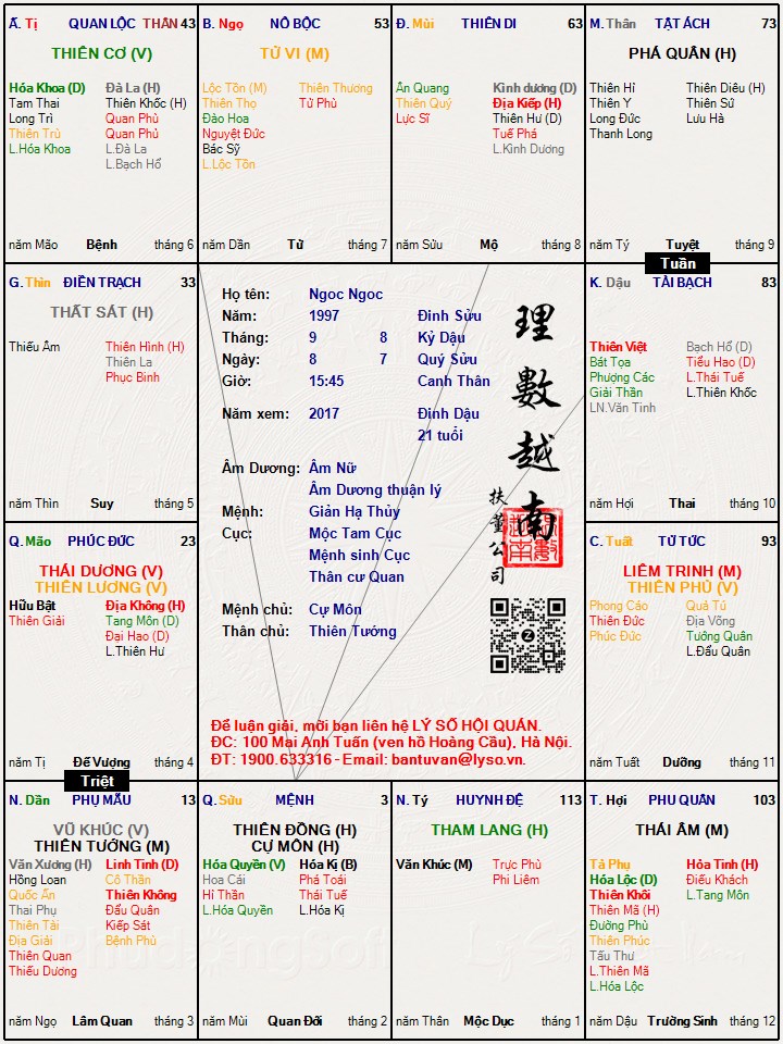 Nhờ mọi người coi dùm nữ nhi lá số xem tâm tính, tiền đồ ra sao. Hiện đang là sinh viên học một ngành sau này tương đối nhàn, nhưng tâm thần hay lo nghĩ bất an cảm thấy mơ hồ mất phương hướng. Nhờ các cao tăng chỉ giáo ạ