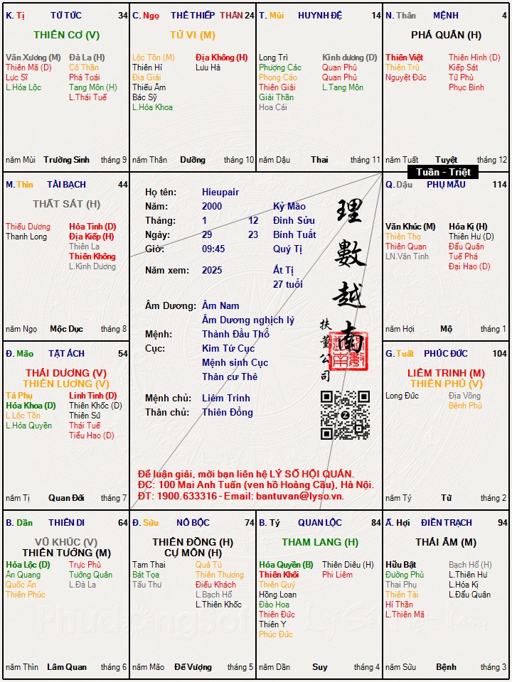 Lá số tử vi : Hieupair