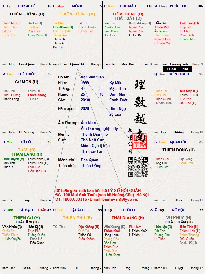 Lá số tử vi : tran van tuan