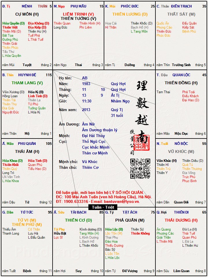 Các luận giải : Lá số tử vi - AB