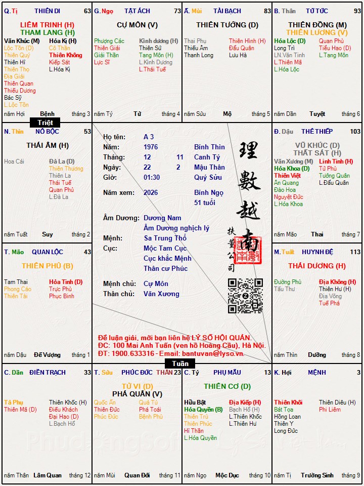 Các luận giải : Lá số tử vi - A 3