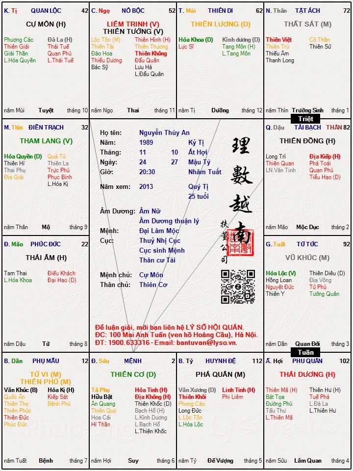 Các luận giải : Lá số tử vi - Nguyễn Thùy An