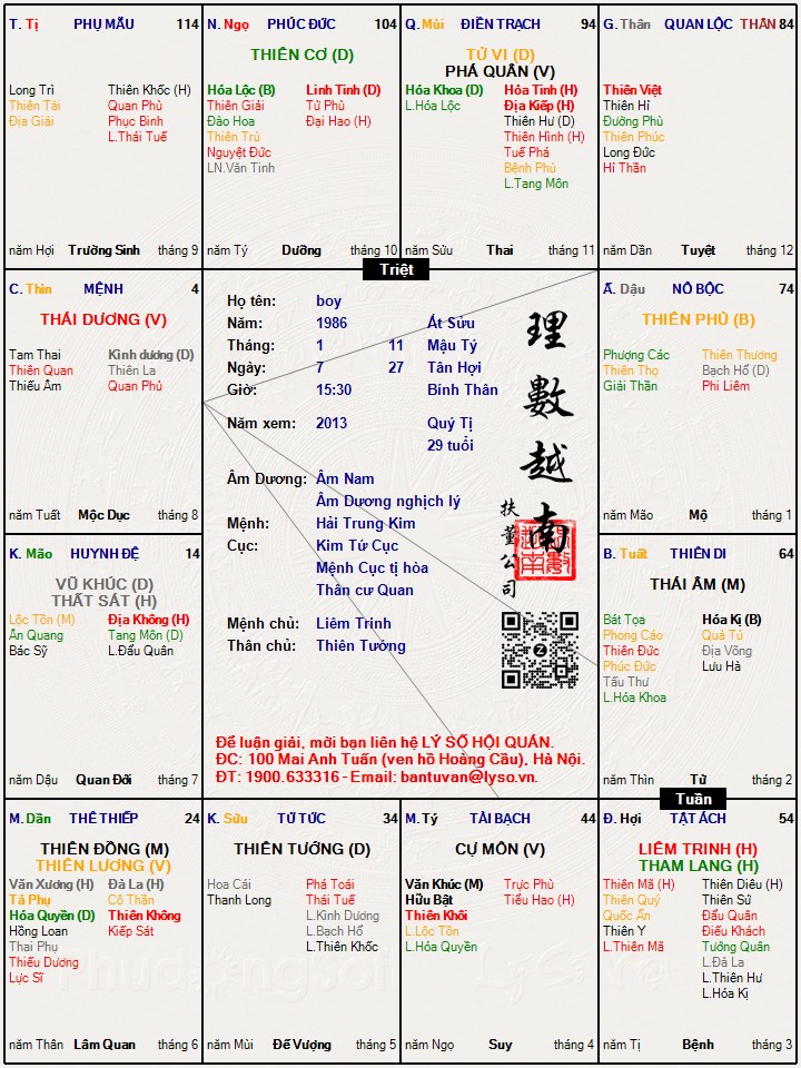Các luận giải : Lá số tử vi - boy
