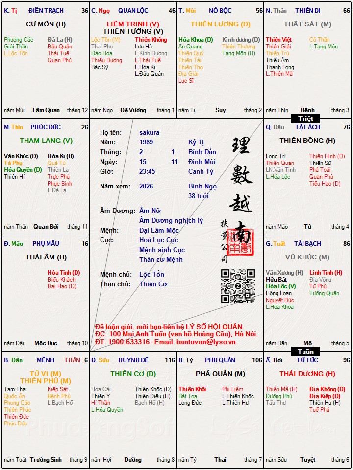 Lá số tử vi : sakura
