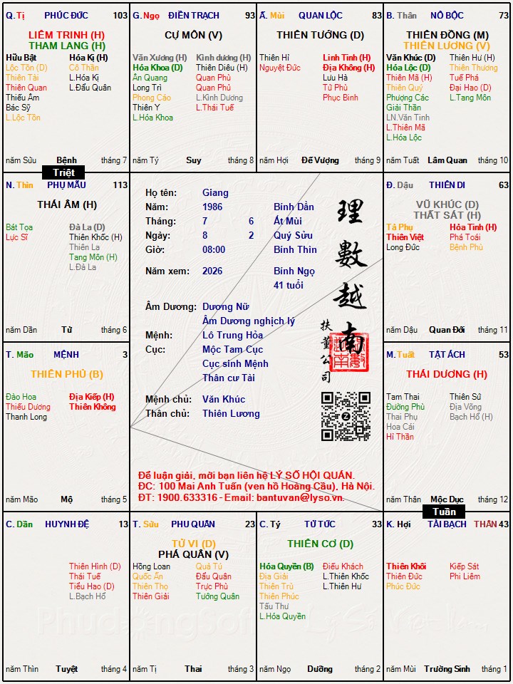 Các luận giải : Lá số tử vi - Giang