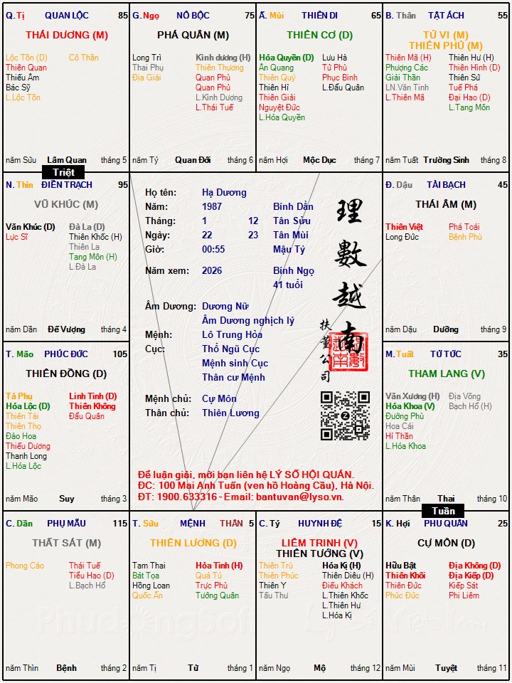 Lá số tử vi : Hạ Dương