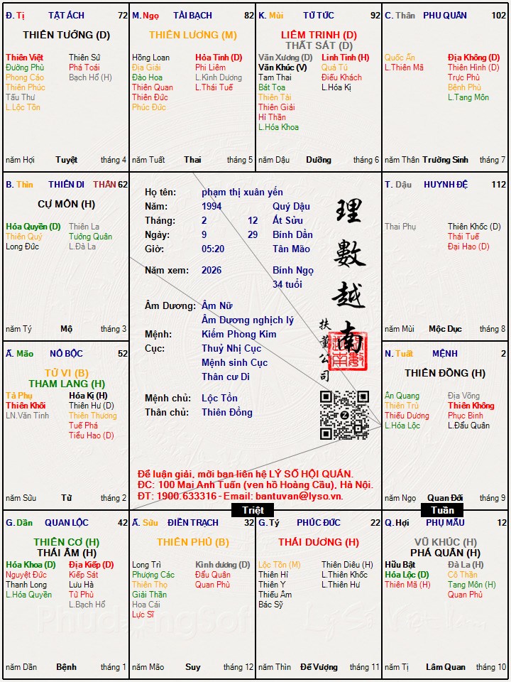Lá số tử vi : phạm thị xuân yến