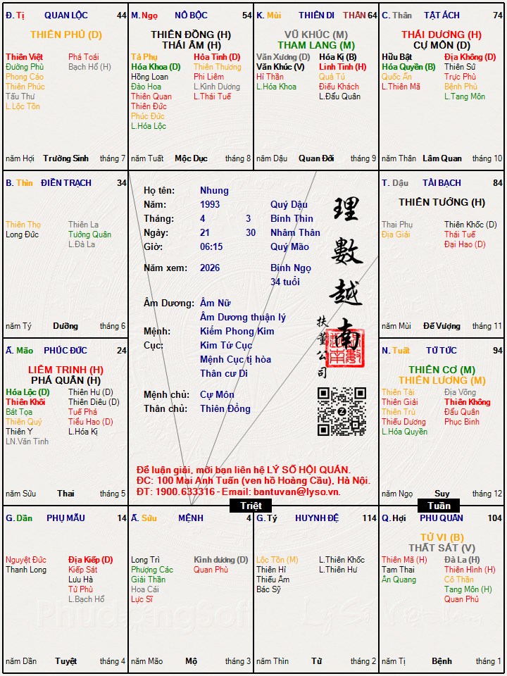 Các luận giải : Lá số tử vi - Nhung