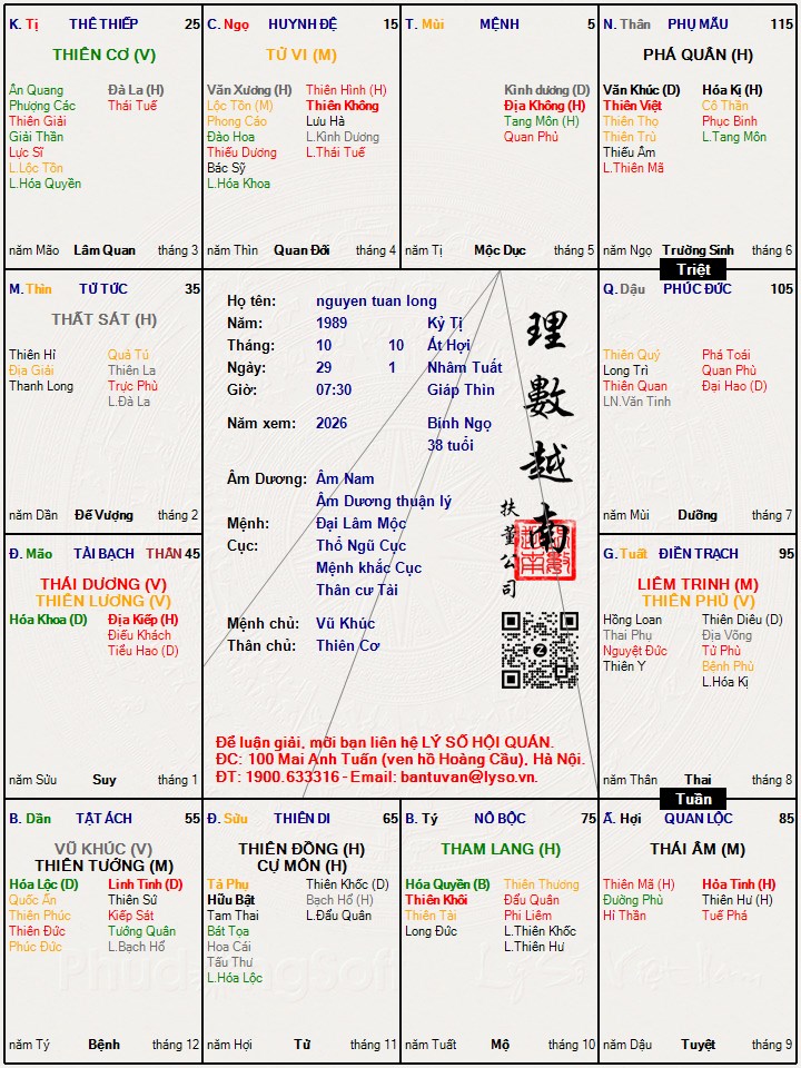 Lá số tử vi : nguyen tuan long