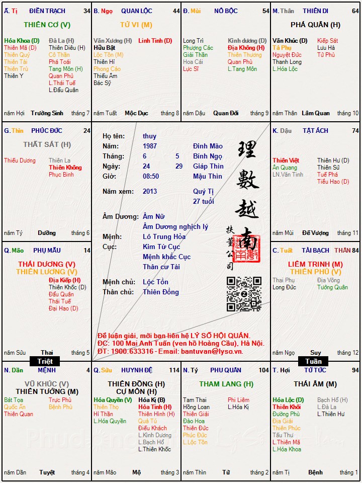 Các luận giải : Lá số tử vi - thuy