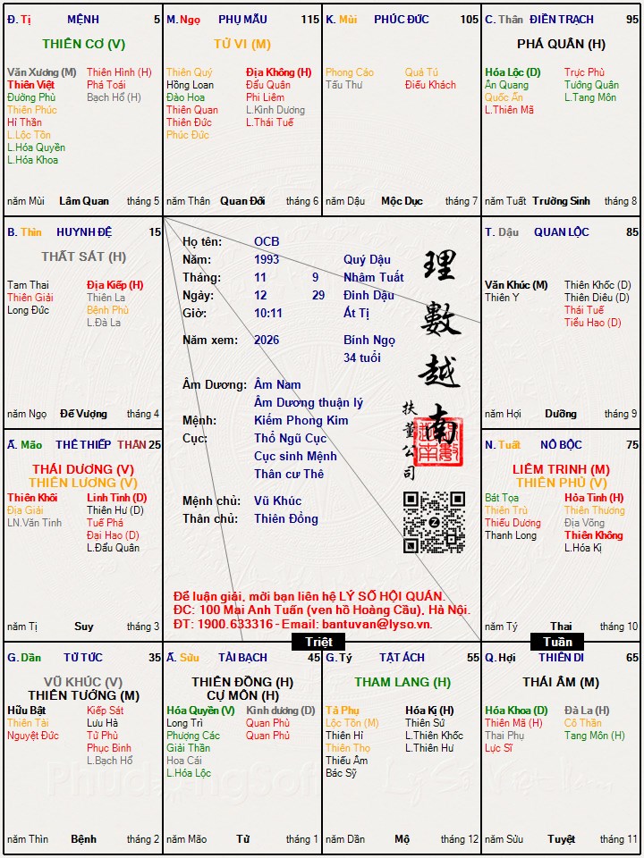 Các luận giải : Lá số tử vi - OCB