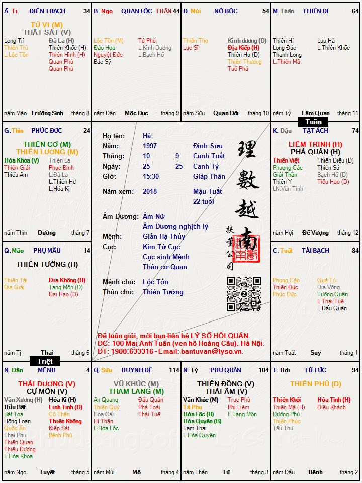 Các luận giải : Lá số tử vi - Hà