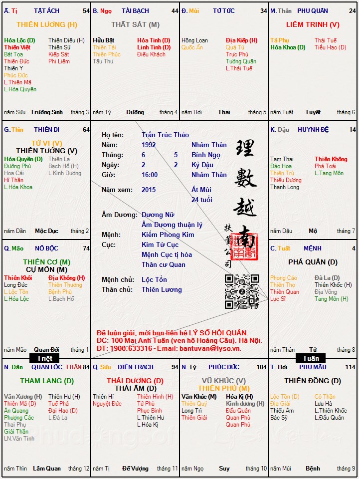 Lá số tử vi : Trần Trúc Thảo