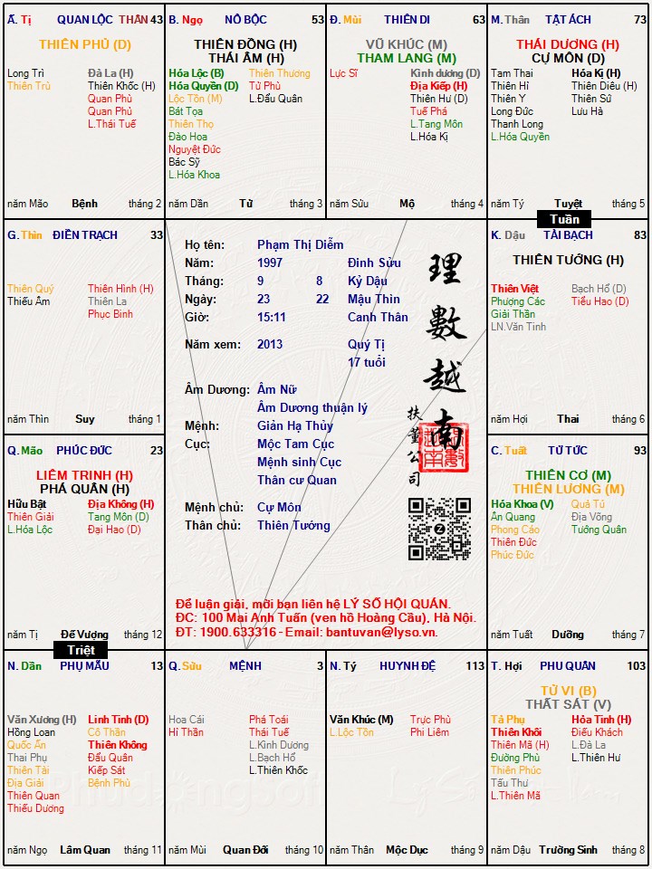Các luận giải : Lá số tử vi - Phạm Thị Diễm