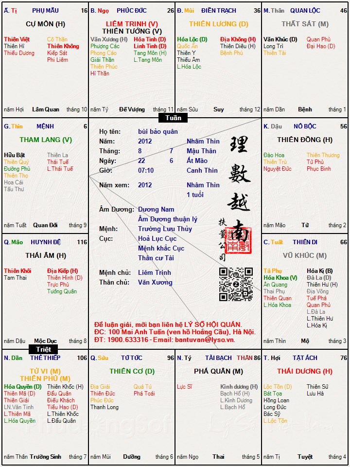 Lá số tử vi : bùi bảo quân