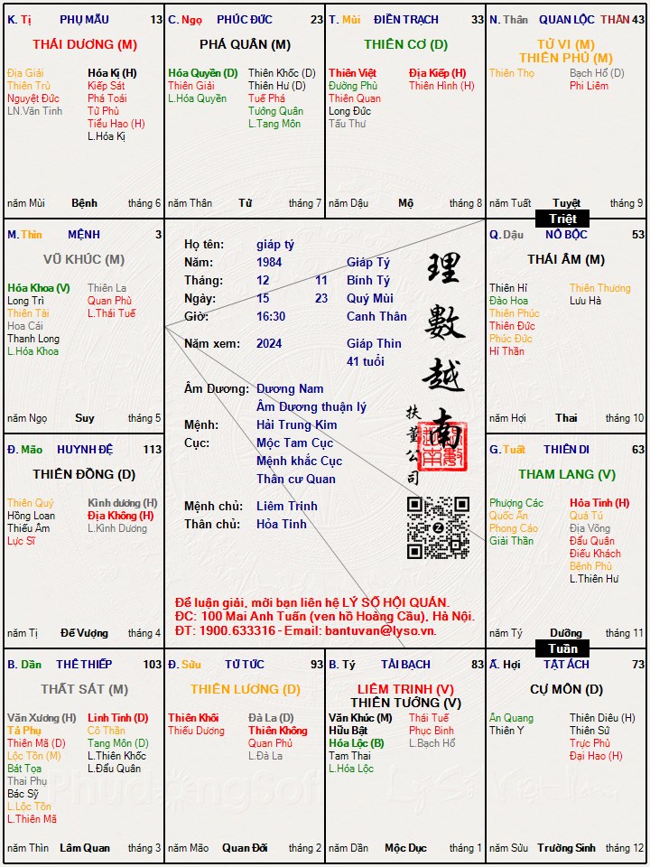 Các luận giải : Lá số tử vi - giáp tý