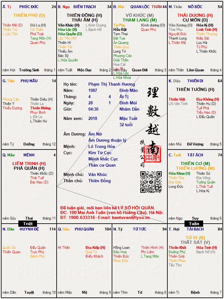 Lá số tử vi : Phạm Thị Thanh Hương