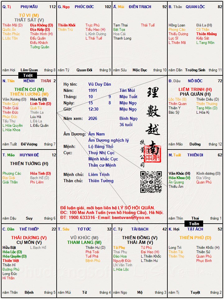 Lá số tử vi : Vũ Duy Dân