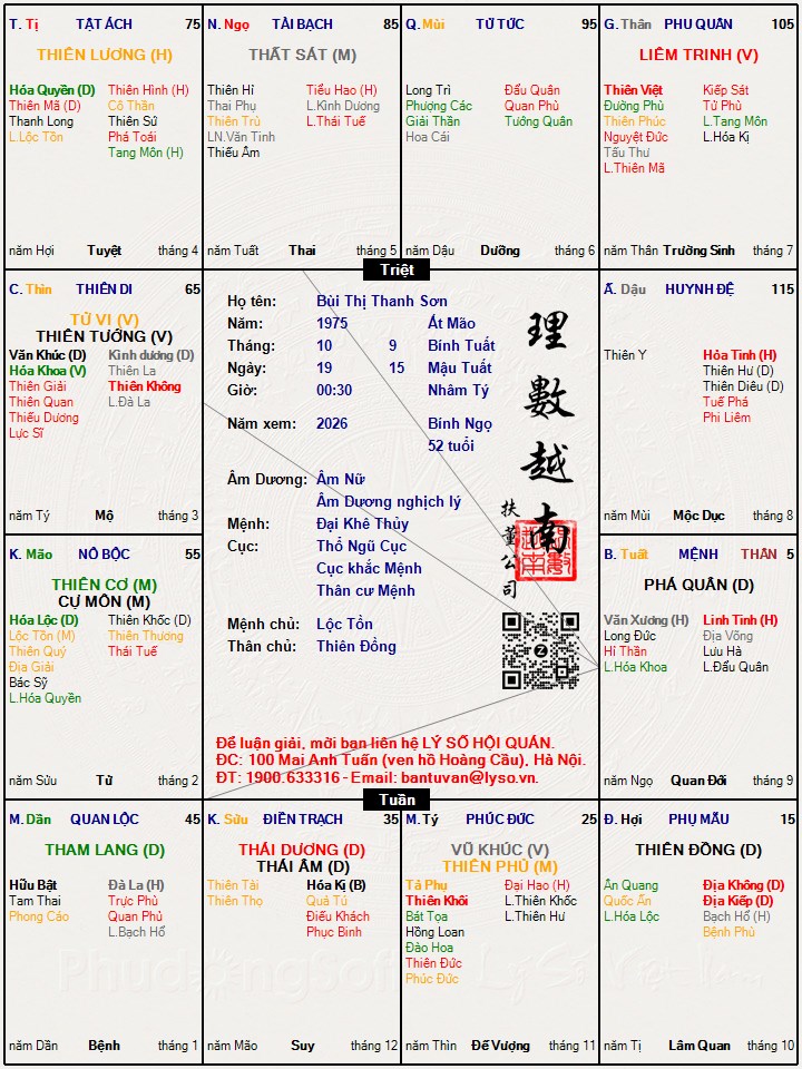 Các luận giải : Lá số tử vi - Bùi Thị Thanh Sơn