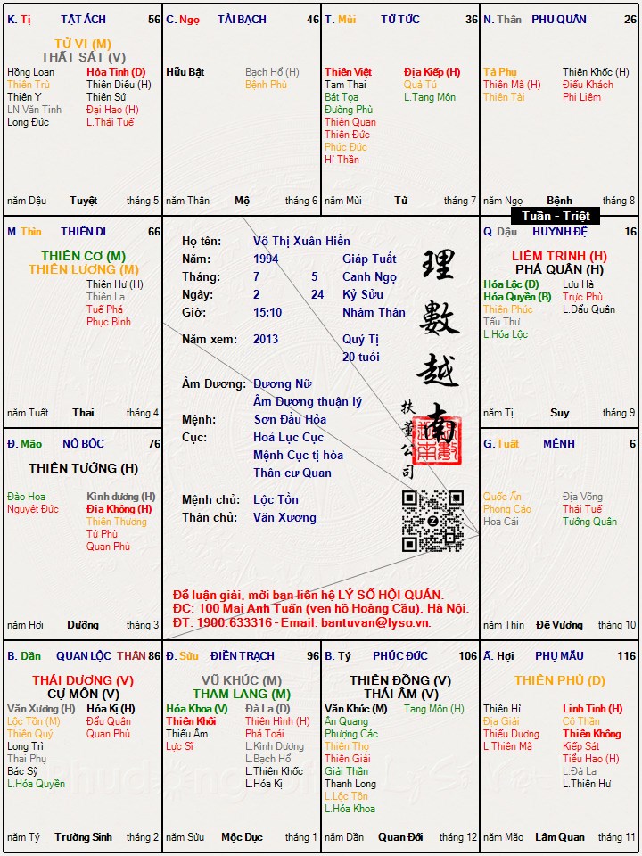 Các luận giải : Lá số tử vi - Võ Thị Xuân Hiền