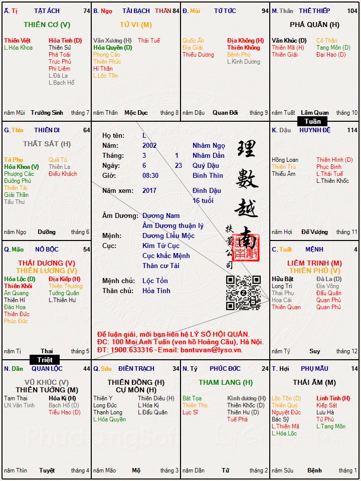 Lá số tử vi : L