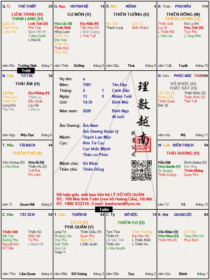 Lá số tử vi : a
