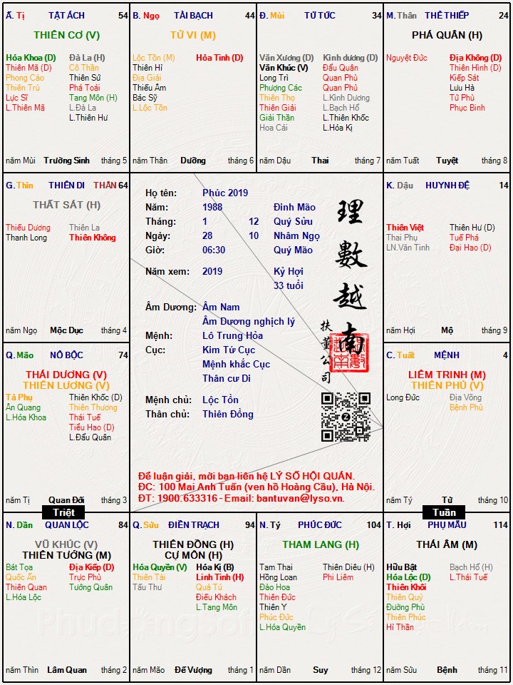 Lá số tử vi : Phúc 2019
