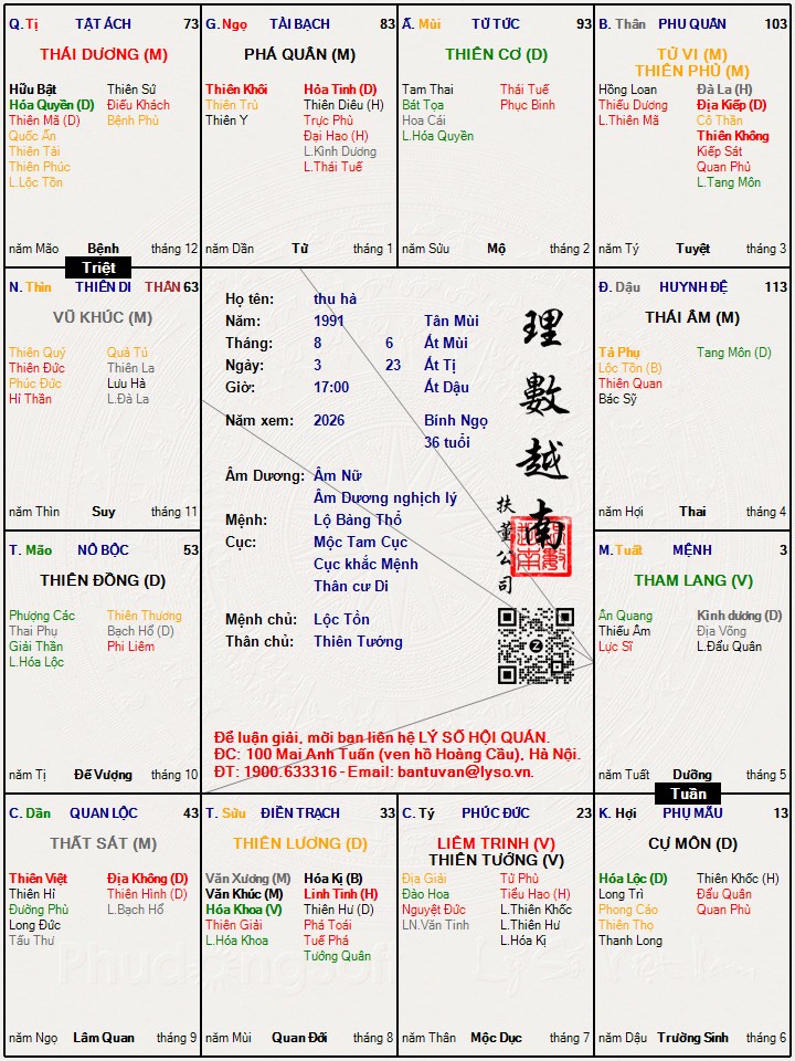 Các luận giải : Lá số tử vi - thu hà