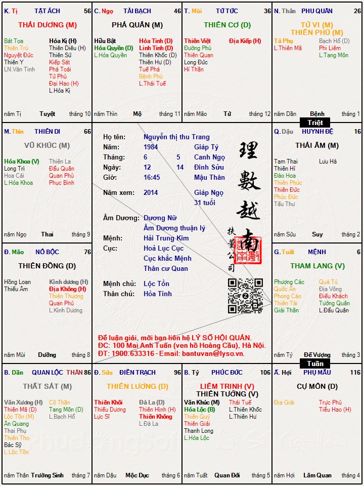 Các luận giải : Lá số tử vi - Nguyễn thị thu Trang