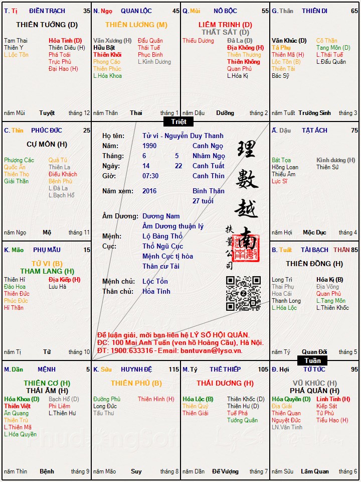 Lá số tử vi : Tử vi - Nguyễn Duy Thanh