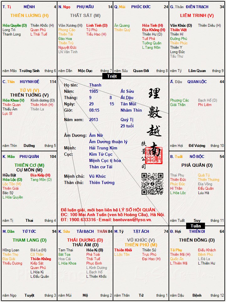 Các luận giải : Lá số tử vi - Thanh